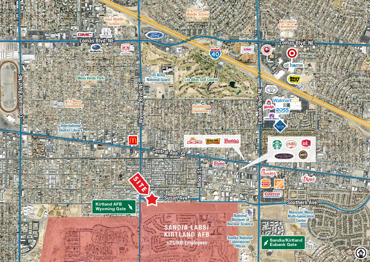 - 1.5 miles south of I-40 & Wyoming Blvd.