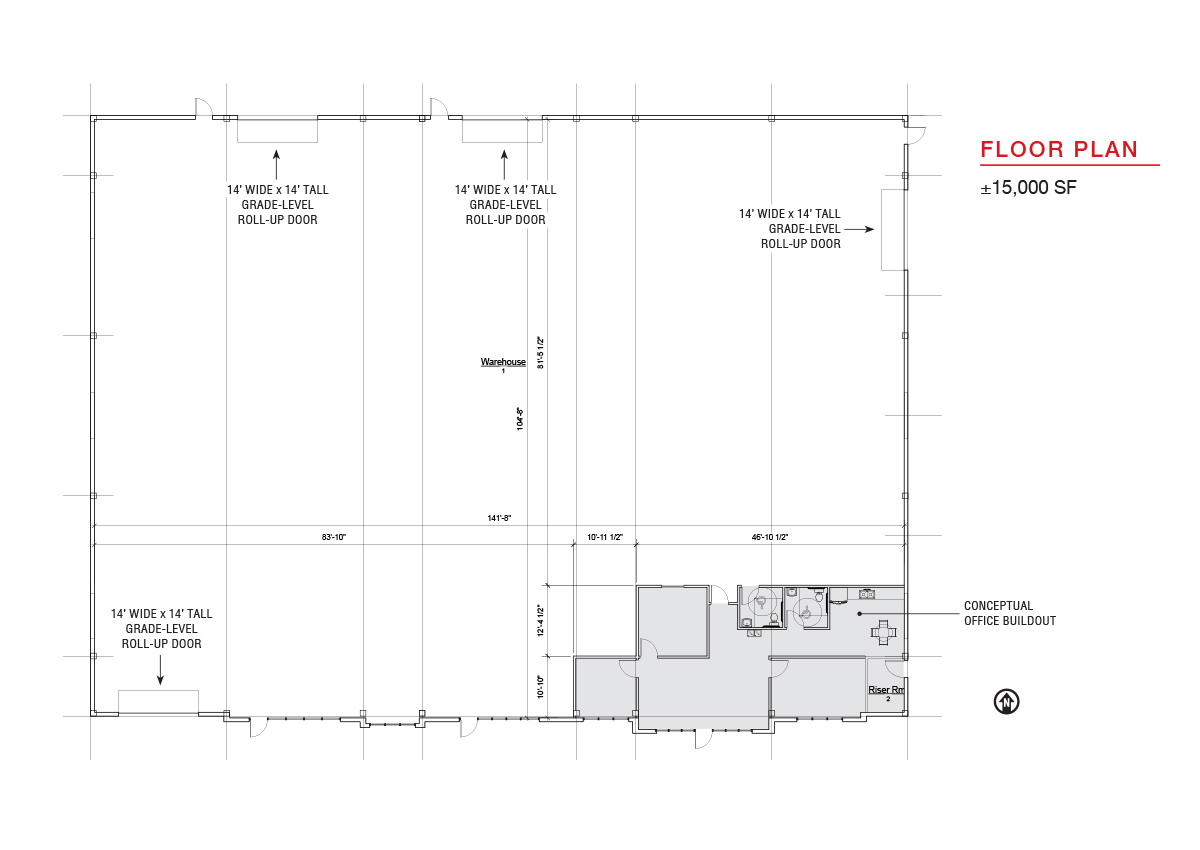 - 4 – 14’x14’ grade-level roll-up doors