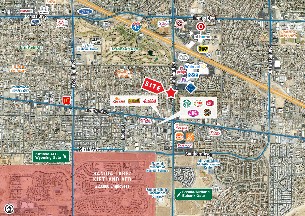 - Conveniently located 1/3 mi. south of I-40, 1/4 mi. north of Central and 1.5 mi. north of Kirtland AFB