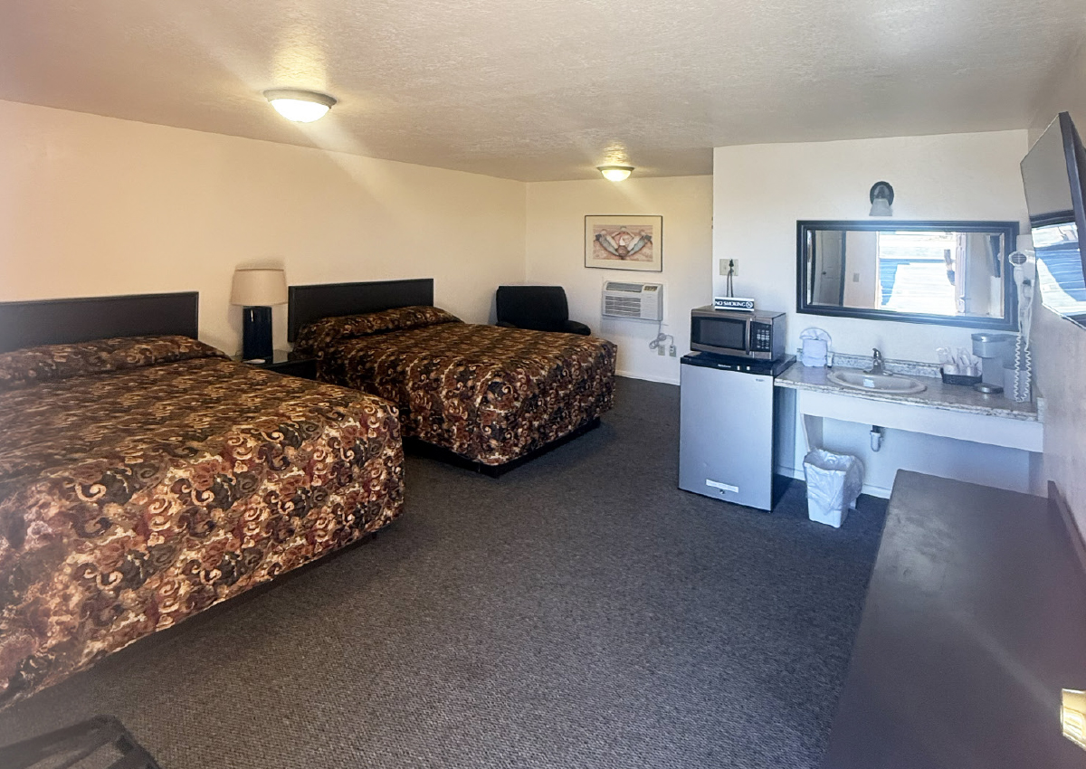 The property features a combination of adobe and cinder block construction, reflecting its historic Route 66 character while maintaining lasting durability. The main electrical service has been upgraded within the last seven years and includes three panels with 120/240 volts, single-phase power, supporting modern usage and guest amenities. The plumbing system is in excellent condition, with multiple cleanouts and service access points located along the west side of the building. The property is served by two propane water heaters, ensuring reliable hot water capacity for guest operations. Roofs include both propanol (on the original adobe structure) and shingle (on the cinder block addition), providing a well-maintained and functional blend of old and new construction.