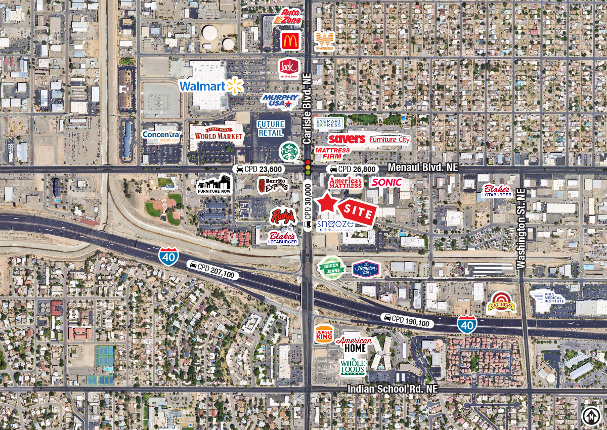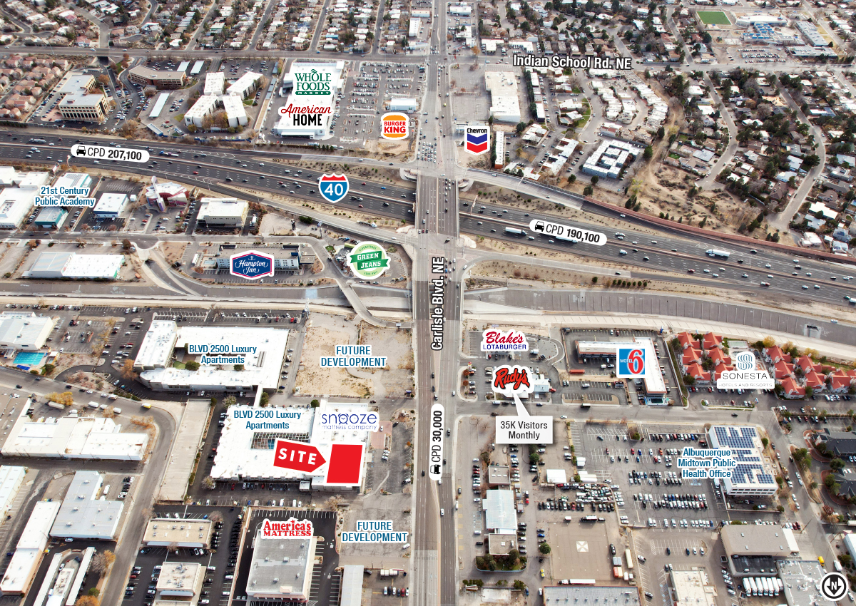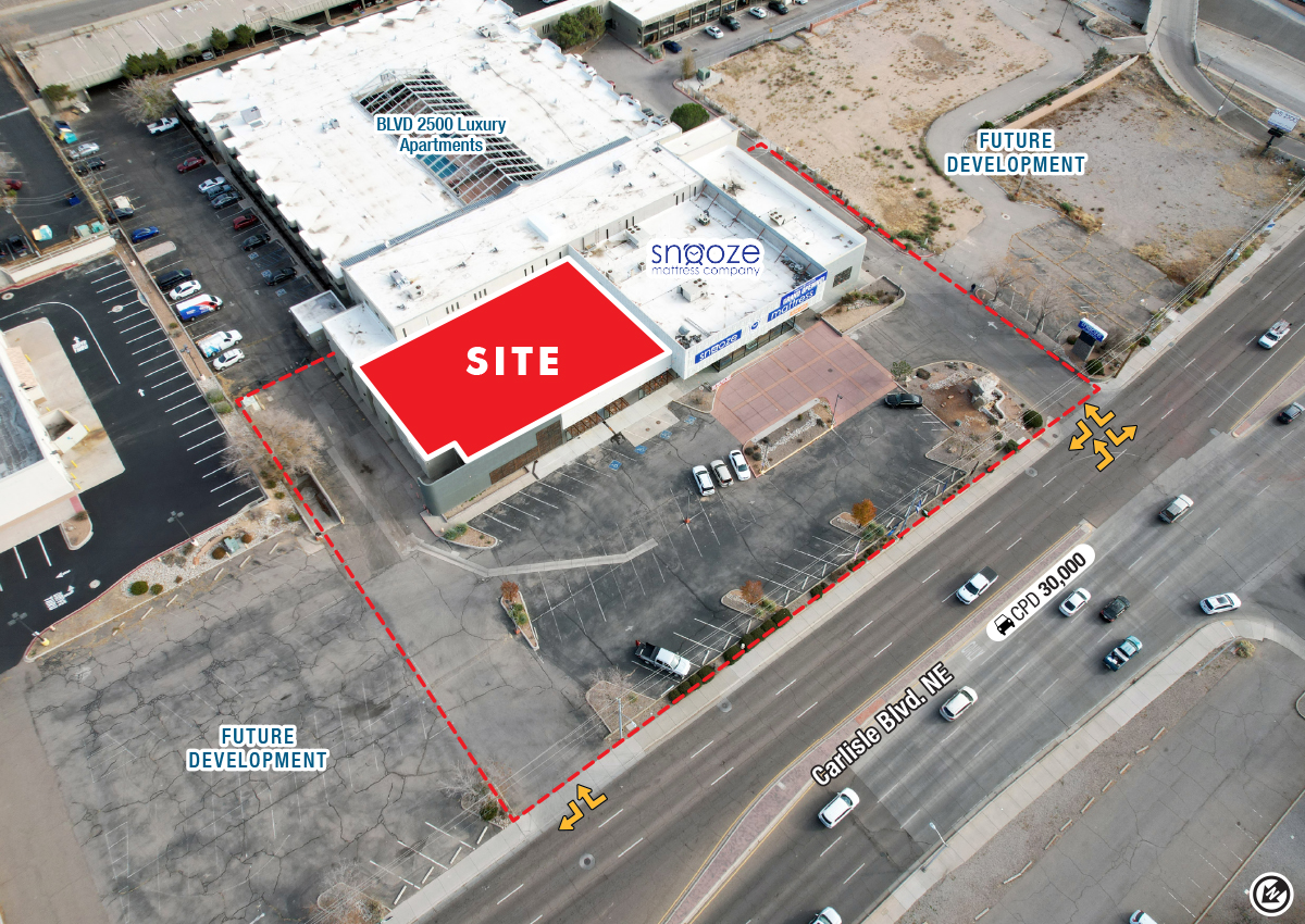 - Highly-visible to ±30,000 cars per day on Carlisle Blvd.
