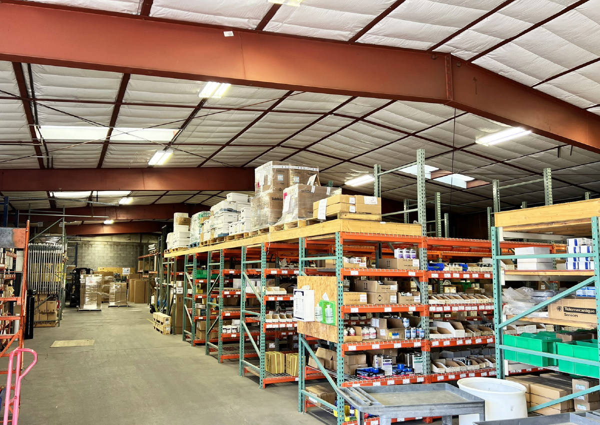 - Clear-span warehouse with 12’-14’ clear height