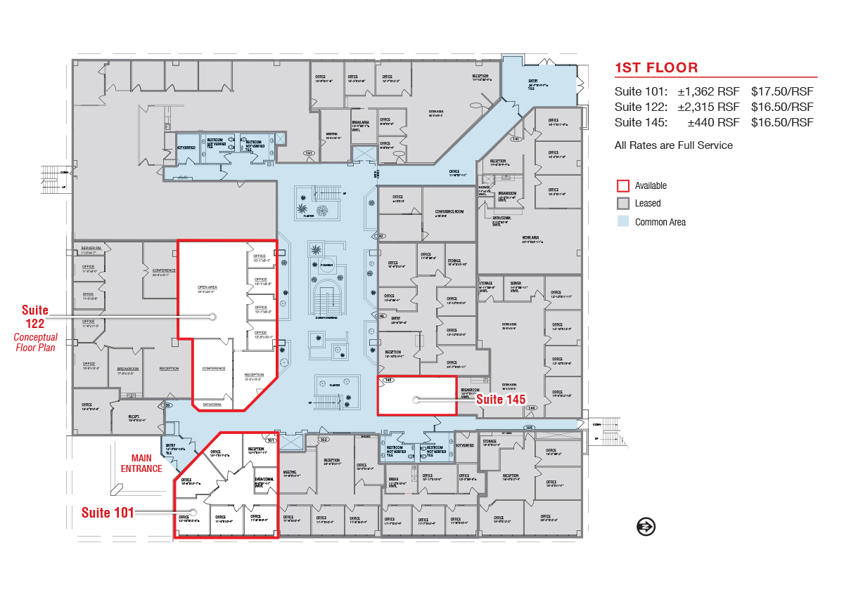 - Lease Rate $16.50/RSF - $17.50/RSF Full Service