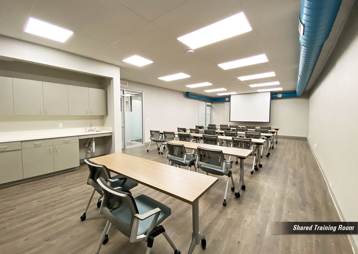 - Shared training, conference rooms and break area within the building