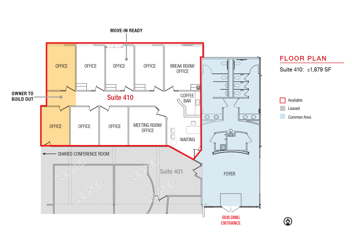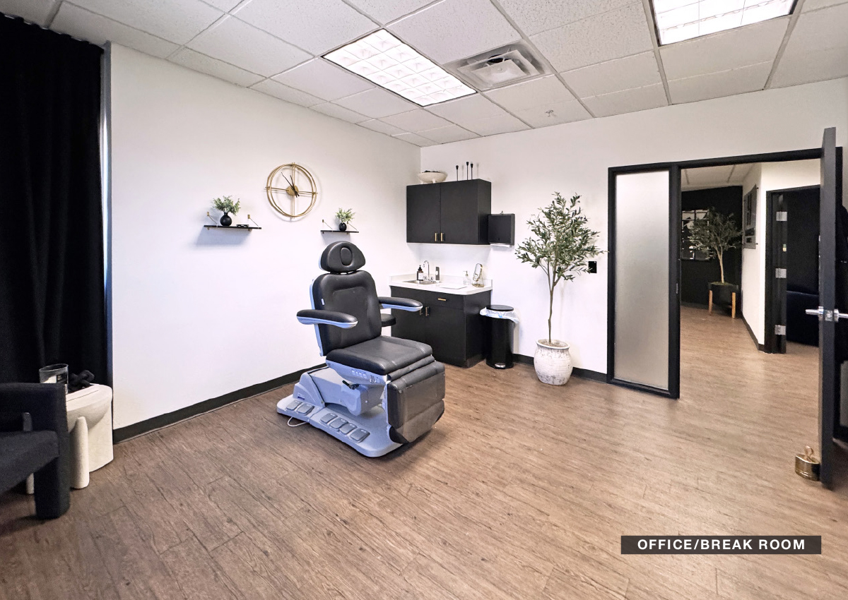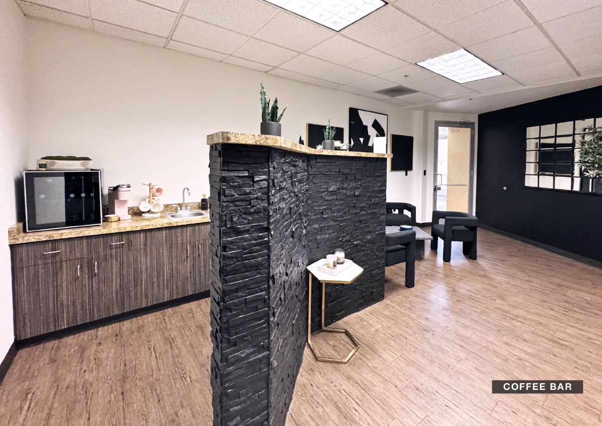 - Reception, 7 offices, coffee bar with sink, office/break room with sink, meeting room/office and storage