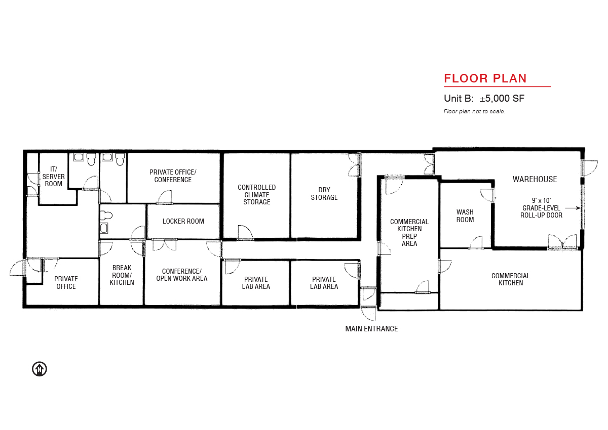 - Warehouse area has 10’ ceiling heights