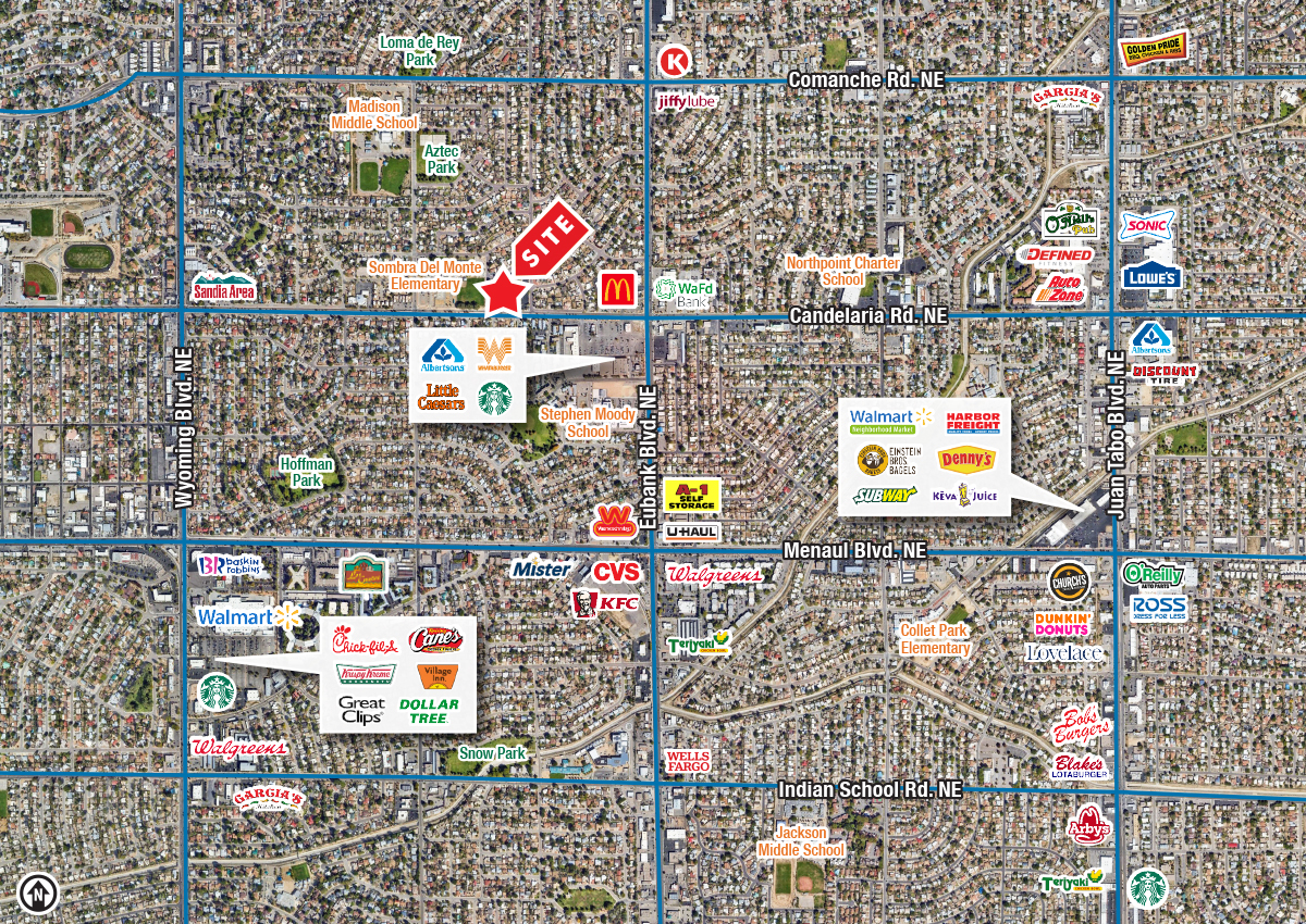 - At the hard corner of Candelaria Rd. & Altez St. NE