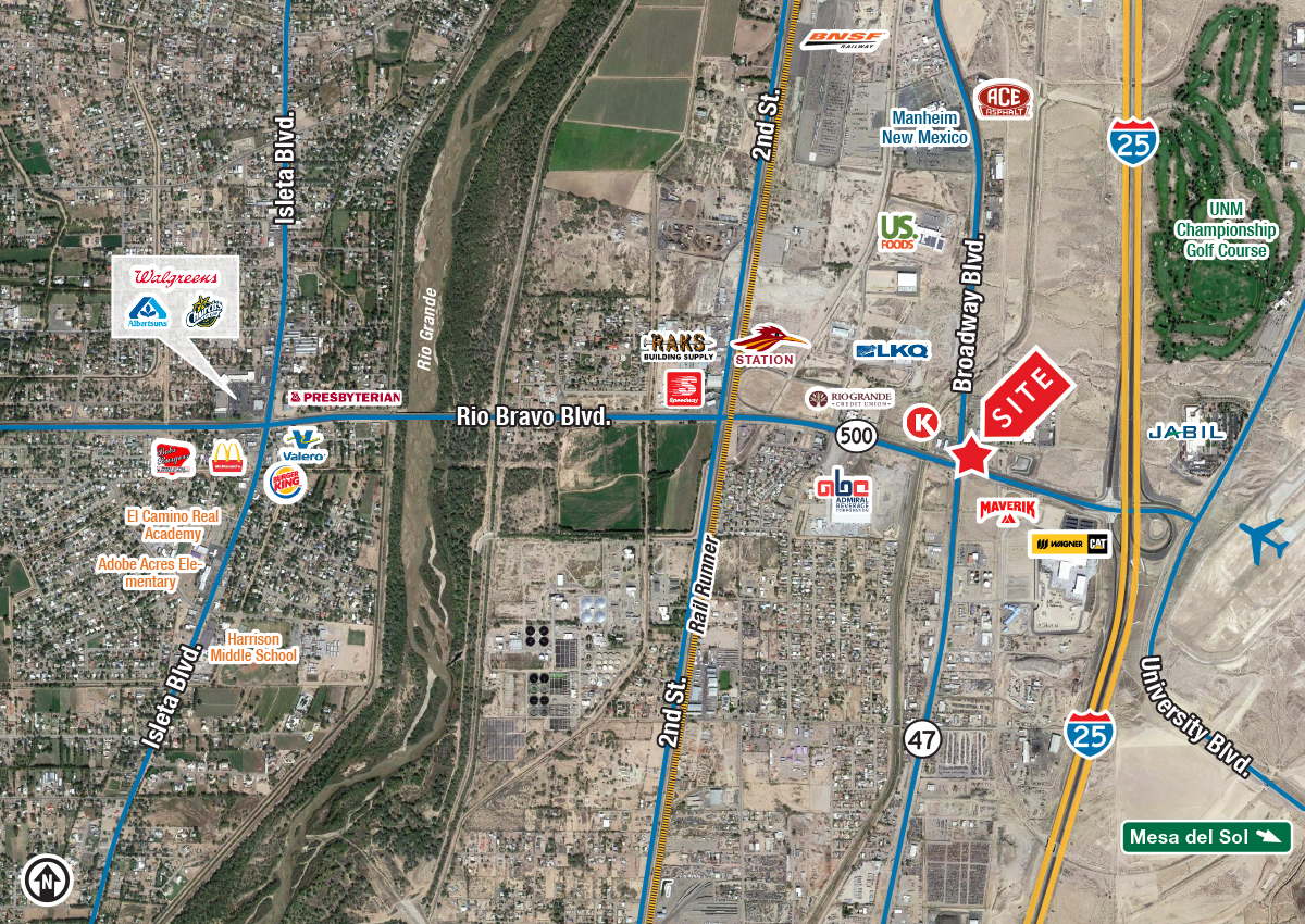 - Located near I-25 & Rio Bravo Blvd.