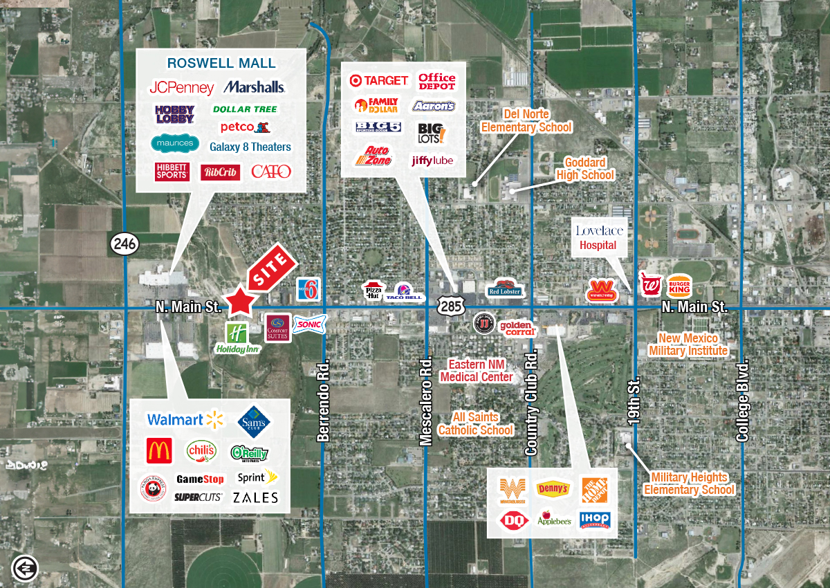 - Immediate trade area is anchored by Walmart, Sam’s Club, Hobby Lobby and the Roswell Mall