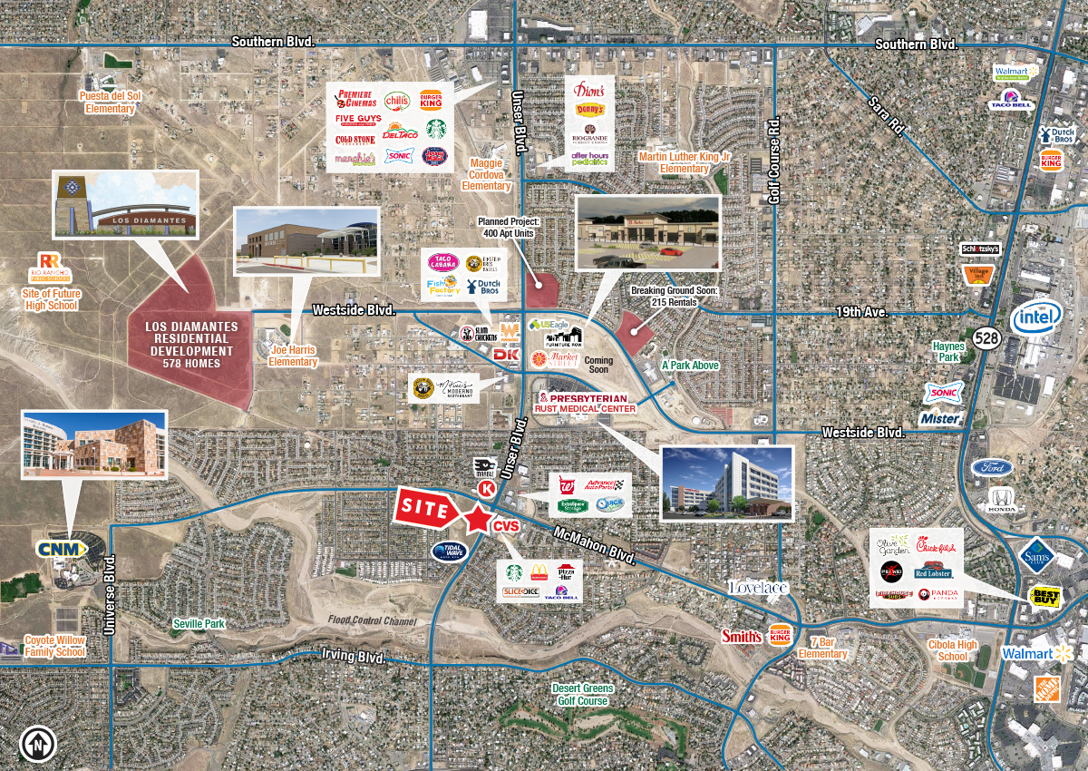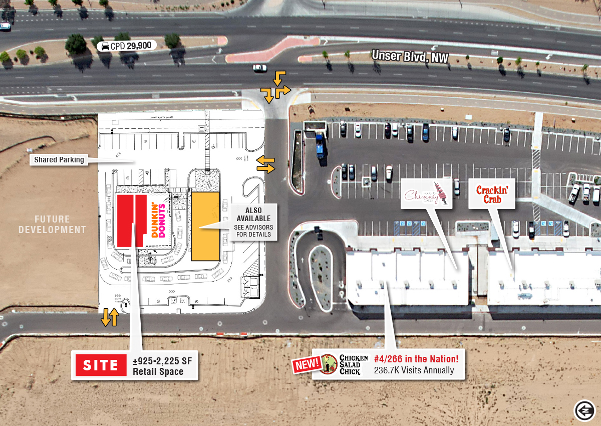 - Frontage visibility along Unser Blvd. with almost 30,000 cars per day